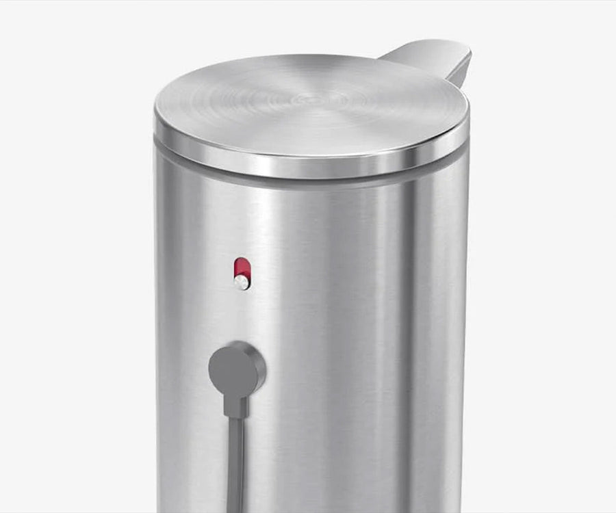 On/off switch facilitates easy cleaning without unexpected soap dispenses. Recharge plug on the back is easy to access, and one charge lasts 4 months.