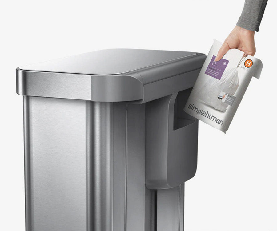 The liner rim holds the liner in place, so there is no longer a need for an inner bucket. Old-fashioned buckets are clumsy, awkward and a big waste of space inside the can — now there’s 25% more room for trash! The interior is designed for easy cleaning with rounded corners and smooth wipeable surfaces.