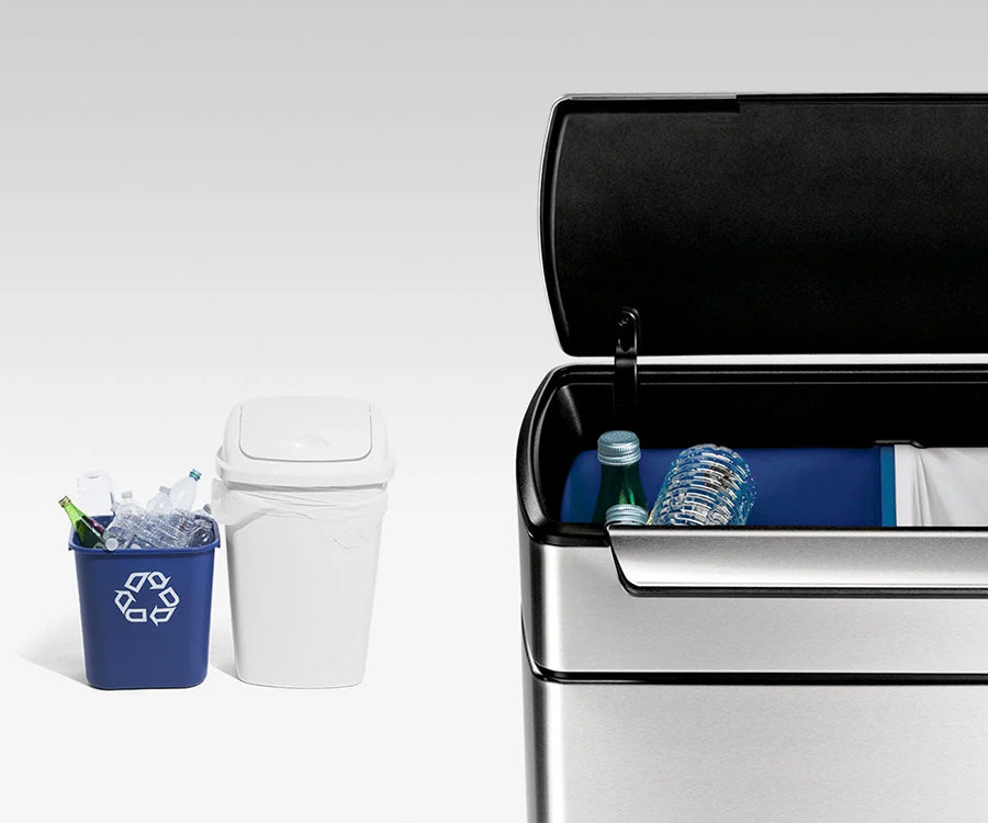 Our dual compartment option neatly sorts your trash and recyclables in this dual-bucket can. One side for trash, one side for easy disposal of recyclables. It makes eco-friendliness very space-efficient.