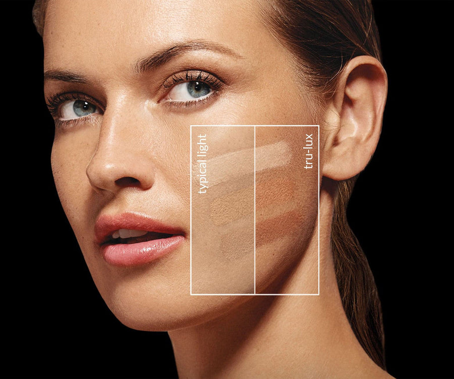 Under the wrong lighting, makeup colors can fool you. With a color rendering index (CRI) of 95, our tru-lux light system closely simulates natural sunlight's full color spectrum to show every detail so you'll always know when your makeup is color-correct and flawless.