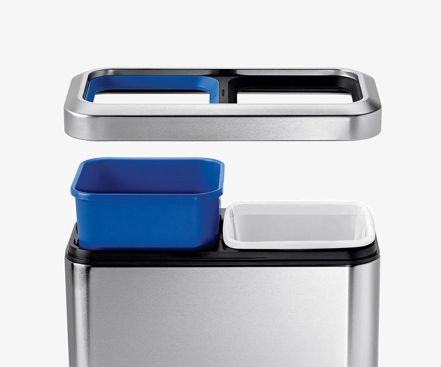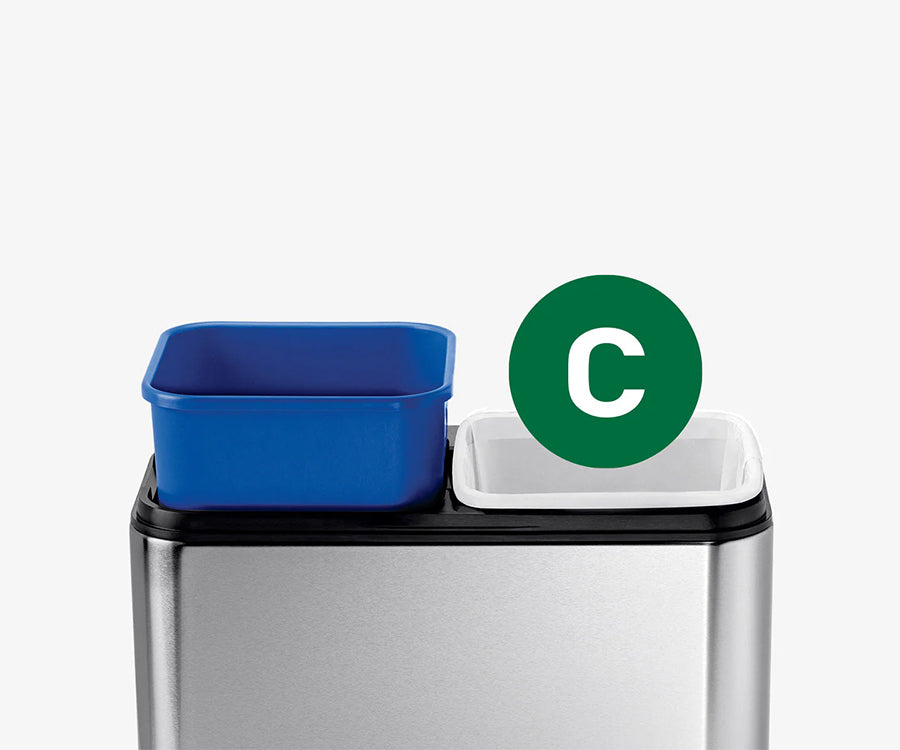 Our dual compartment option neatly sorts your trash and recyclables in this dual-bucket can. It makes eco-friendliness very space-efficient.
