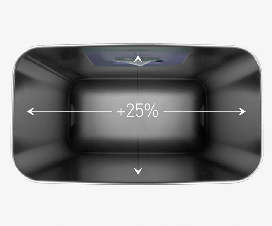 The liner rim holds the liner in place, so there is no longer a need for an inner bucket. Old-fashioned buckets are clumsy, awkward and a big waste of space inside the can — now there’s 25% more room for trash! The interior is designed for easy cleaning with rounded corners and smooth wipeable surfaces.