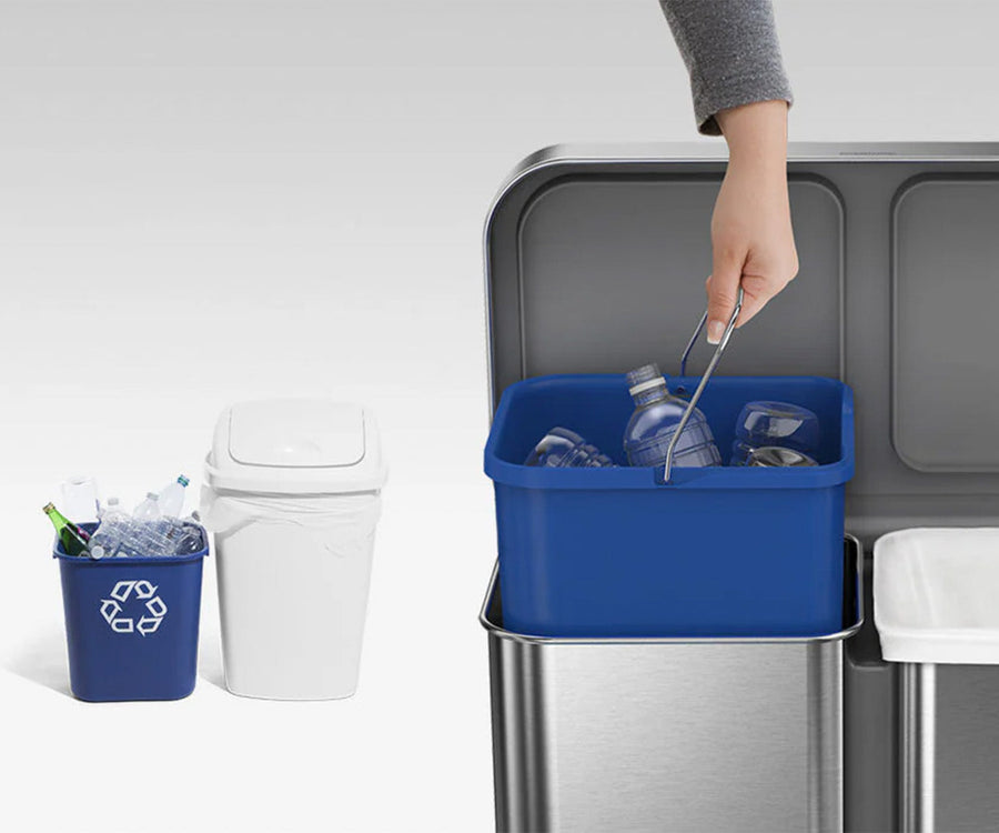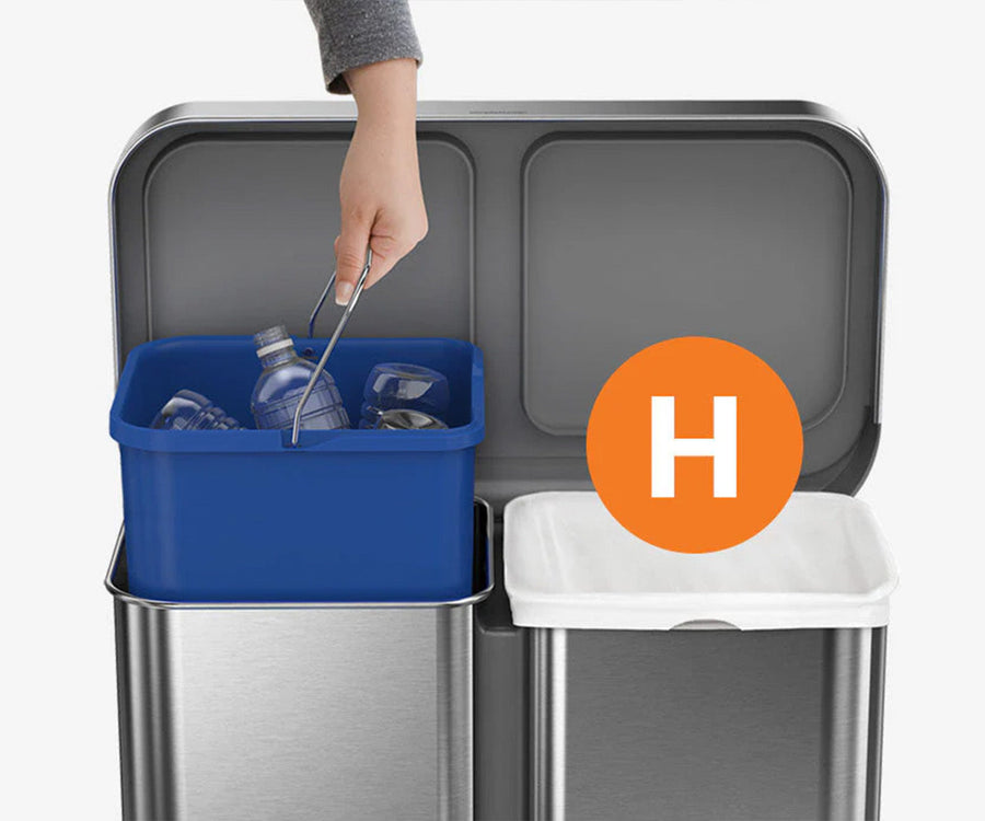 Our dual compartment option makes sorting trash look good! Each side has a generous capacity, and emptying is easy with a plastic bucket on the recycling side and a liner pocket in the trash compartment.