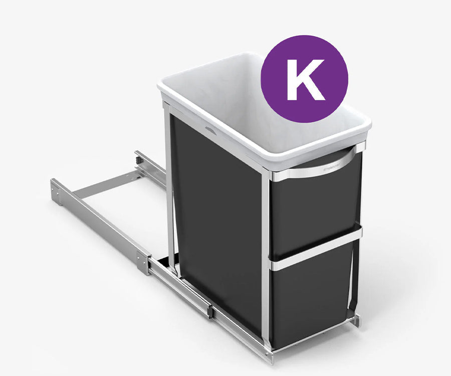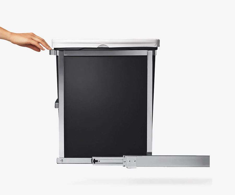 Our pull-out can is engineered for years of use. This trash can has a tough all-steel frame and glides fully out of the cabinet on smooth commercial-grade ball-bearing tracks for quick and easy access.